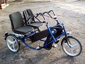 | Wheelchair tandem for family and group participation, comes complete with detachable wheelchair. Easy to pedal version is available in several gearing options |